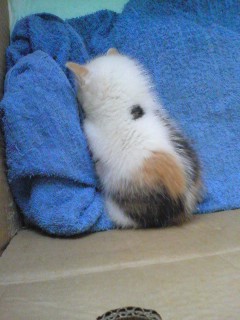 叔父の家から一時預かりということで、今、私の家に猫がいます。しかも仔猫。生後3週間くらい。しっぽがものすごく短くって、色がピンクなので、すももちゃんと名付けられました。 仔猫に関して思ったこと ・かわいい まあ、文句なしに ・よたよたしている 歩き方を勉強中 ・目が大きい 赤ちゃんですな ・狐に似ている ツリ目 ・エイリアンかも そんな気もする ・小さい 赤ちゃんですから ・軽い 同上 ・片手で持てる うん ・みゃーみゃーと鳴く どうやら甘えているようです ・くさい(エサ?) なんか、んー...さかなかな ・危うい 生命が ・怖い 守らなきゃいけないかんじが ・わからない 何かが ・うさぎとは違う はっきりしている気がする ・猫...なのか? どうなのか ・模様がとても素晴らしい 黒、こげ茶、茶の斑が背中に ・清志郎と名付けたかった 彼を偲ぶために、ラジオで曲が流れていたので |